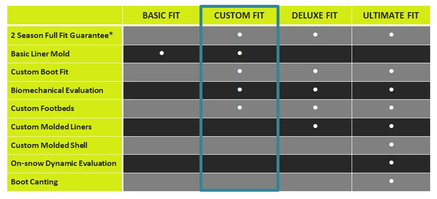Suited for: A skier who is looking for the additional comfort and performance that custom footbeds/orthotics can provide, and the peace of mind that comes with a full fit guarantee.